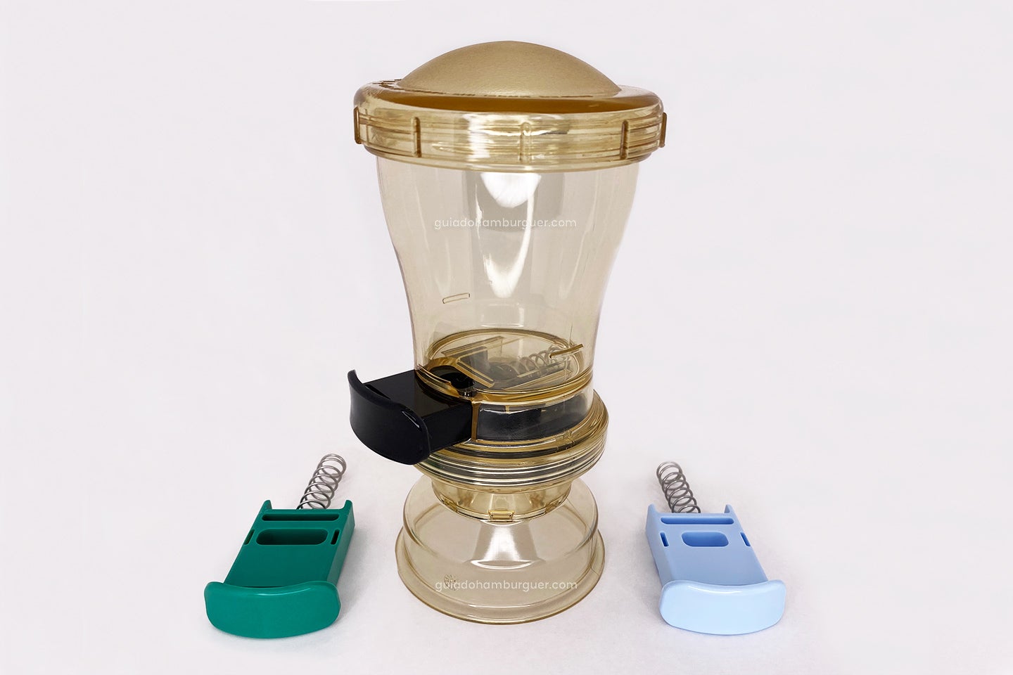 - 3 Gatilhos: preto (1/4 de colher de chá ou 1,25g) azul (1/3 de colher de chá 1,7g) e verde (1/2 de colher de chá 2,5g)